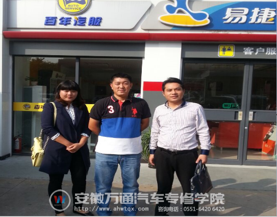 2015年11月4日下午,创就业指导中心赵主任与就业专员邓老师赴鹏鹏和百年汽服两家企业进行实地回访,了解企业运营管理模式及我院生在企业工作的表现情况, 同时赵主任还与企业领导就人才培养及管理等交换了意见,为培养更多符合企业需求的高素质汽修精英指明了方向,企业领导表示以后录用会优先考虑安徽万通的生。