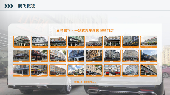 义乌腾飞汽车服务连锁机构成立于2006年,是国内首批规模化、标准化、品牌化、连锁化的汽车服务品牌,多次被浙江省供应商评为“浙江省汽车后市场模范门店”。公司主营美容养护、装潢改装、保养维修、轮胎轮毂、钣金喷漆、保险理赔、整车销售,会员服务等业务,经过十几年的发展现为多个全球及国内汽车用品品牌。我校与腾飞汽车达成多年,向腾飞汽车输送了大量优秀的行业精英。