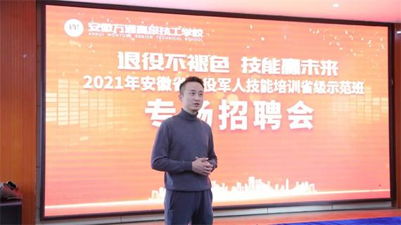 同时,负责人表示,安徽万通往届学子在企业表现的都十分亮眼,他们的业务能力非常优秀,面对技术难题能随机应变,灵活处理,在客户群体中口碑很好,也相信退役军人定制班的学子能不负众望开启职场生涯。
