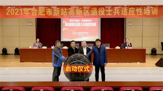 随后,合肥市退役军人事务局党组成员、副局长方亮、新华教育集团副总裁汪俊、合肥市退役军人事务局思想政治和权益维护处处长陈保健、合肥新站高新区社区管理局局长徐明刚等领导触摸启动球,共同宣布本次退役士兵适应性培训班正式开班。