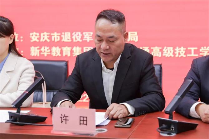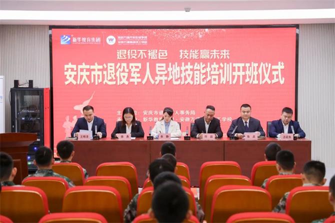 11月18日上午,安庆市2022年退役军人异地技能培训开班仪式在安徽万通高级技工学校举行,这是我校第六批退役军人技能培训共建班。安庆市退役军人事务局就业创业科科长余静、安徽万通高级技工学校校长助理许田、新华教育集团退役军人专项工作组主任徐燕、安徽万通高级技工学校校区主任张庆、教务处主任王明洋、对外合作部主任汪延东等校领导出席开班仪式并讲话。