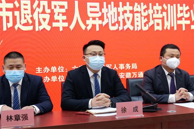 活动现场 安徽万通高级技工学校校区主任张庆、行政处主任刘涛、创就业指导中心主任徐成、对外合作部主任汪延东、学生处主管林章强及全体技能培训共建班的老师和退役军人学员出席了此次毕业典礼,典礼由对外合作部主任汪延东主持。