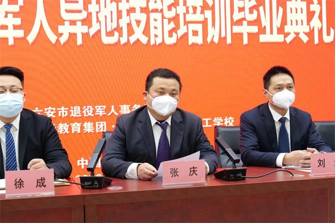 校区主任张庆 校区主任张庆对六安市退役军人事务局的信任与支持表示了感谢,对各位结业的退役军人学员表示祝贺。他希望学员们利用好此次机会,相互交流,相互配合,共享资源,成就每一个人。发挥自身优势,发扬“螺丝钉”精神,以坚定的信念和饱满的热情,在各自岗位上捷报频传,不断创造一个又一个辉煌业绩。最后,他宣布“六安市 2022 年退役军人异地技能培训共建班”培训工作圆满结束。
