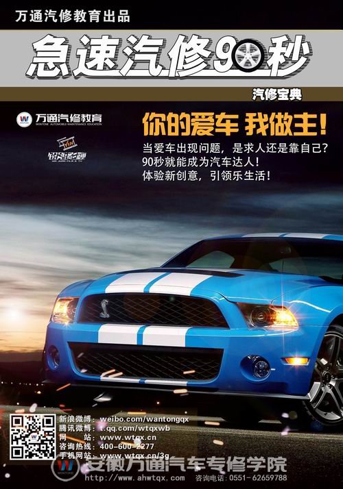 不仅如此,本着更好地帮助中国近亿万广大车主普及基础汽车保养、维护小知识,简单解决汽车各类问题的初衷,万通汽修教育集还结旗下众多院校优秀汽修大师,与国内知名大型视频网站土豆网共同推出了“急速汽修90秒”汽修百科教学视频。目前视频已全部上线,观看地址:http://zone.tudou.com/speed90