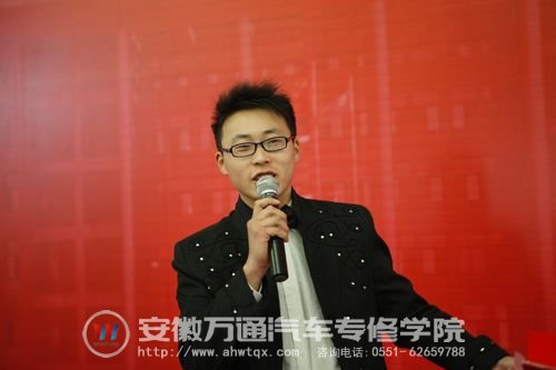 2010年应家里人要求,他选择了汽修行业来到了安徽万通。一年的时间里他挥洒汗水,不断进取,努力使自己成为一名优秀的教师。其中的艰辛只有他自己知道,终于在2011年正式成为学校整车授课教师,至今,荣获“先进个人”、“优秀标兵”、“优秀教师”等一系列荣誉称号,除此之外,他还是一位优秀的主持人,在院校举办的大型晚会上总会看到他忙碌的身影。