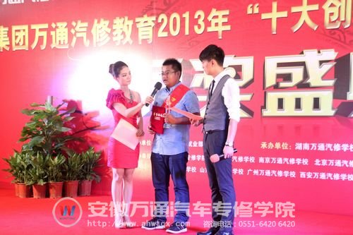 万通汽修教育“十大创就业之星”颁奖典礼上孙超接受主持人的采访