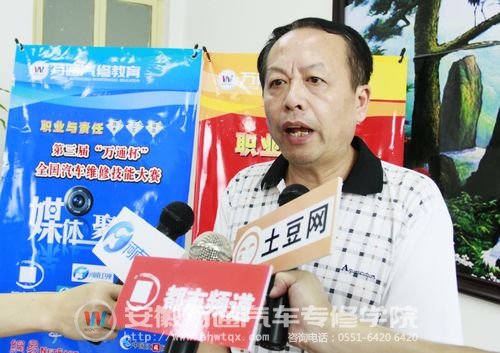新华教育集团汽修事业部副总经理何扬接受记者采访