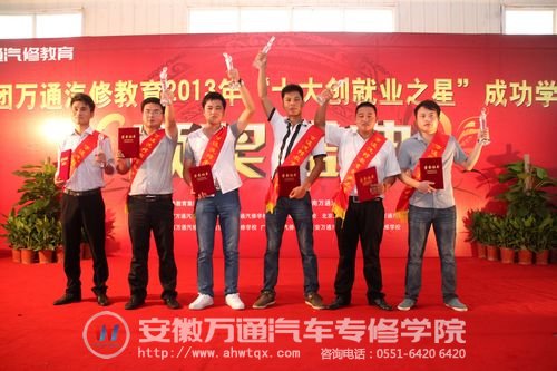 王兵和其他就业之星在万通汽修教育颁奖典礼上