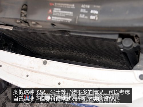 对于情况比较严重的车辆,我并不建议自己动手清洗,因为需要拆下前防撞梁。对于飞絮和尘土不多的车辆,并且车主自己动手能力比较强,可以考虑自己清理,但需要有类似便携式洗车机这样的设备。