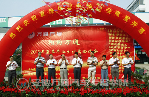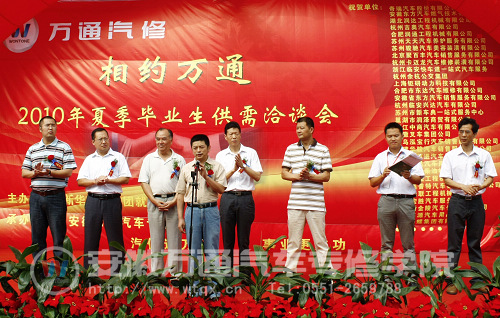 2010年8月6日,安徽万通汽车专修学院校园内人头攒动,彩旗飘扬,“相约万通”2010年夏季生供需洽谈会在这里隆重开幕。来自全国各地的近百家用人单位齐聚于此,共同寻求自己的“千里马”。