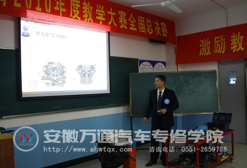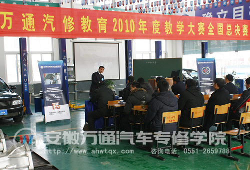 为全面贯彻学院理实一体化教学理念,进一步做好课程标准、学科技能及教学设计等项目工作,提高教师的业务水平和综合素质,1月7日,万通汽修教育2010年度教学大赛全国总决赛在我院隆重开幕,来自全国各个万通学院的教师齐聚一堂,分别展示着自己的技能绝活。