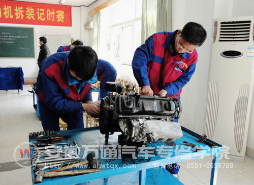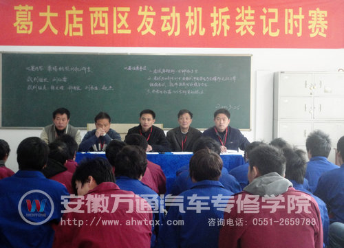 3月26日上午,在安徽万通汽车专修学院葛大店西区实训室内,一场激动人心的技能竞赛引来很多人的关注,几十个学生汇聚在一起,参加学院组织的“发动机拆装计时赛”,考验自身所学技能,提高自我学习效率。据了解,本次比赛受到安徽万通汽车专修学院相关组织部门的关心、重视,所有流程严格按照预先制定的评分标准和比赛规则进行。终,汽车检测与维修专业3班的柳兆泉与高康康以40分钟的好成绩获得计时赛第一名。