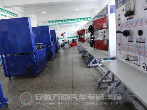 自2011年秋季开学以来,安徽万通汽车专修学院实训室设施设备陆续实现升级换代,从整车到汽车发动机台架、汽车电器实训台架、底盘以及汽车故障检测设备等等均做到吐“故”纳“新”。目前,全新的设施设备已经相继在学院各个校区“理实一体化”教室投入使用。