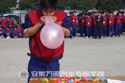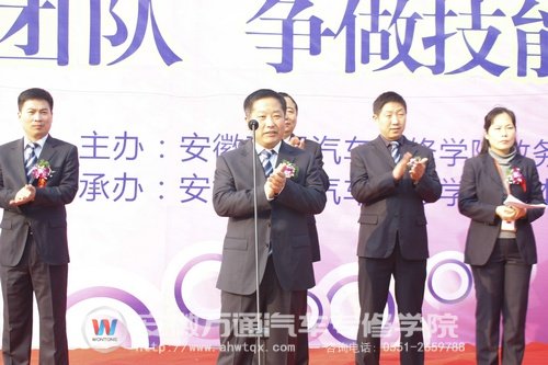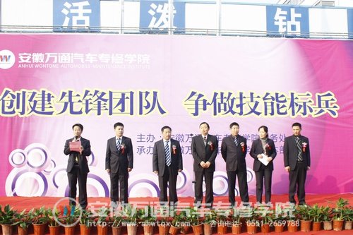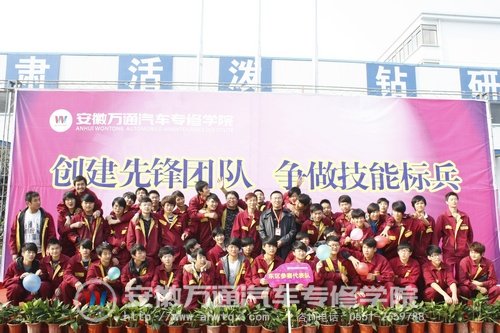 2011年11月12日上午,安徽万通汽车专修学院校园内呐喊声一片,热闹非凡,学院几百名学生济济一堂,斗志昂扬,共同参加学校组织的主题为“争做先锋团队,创建技能标兵”的学生社团技能大赛与班级职素拓展实践活动。