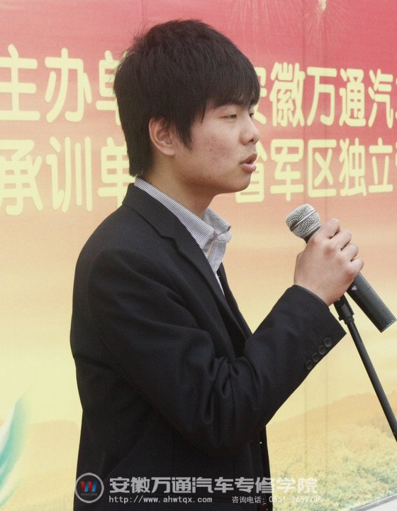 安徽万通汽车专修学院张荣全院长在会上发表了重要讲话。他首先表达了对支持我院军训工作的省军区独立营部队官兵的崇高敬意和衷心感谢,并对所有春季入学新生表示欢迎。他强调,“国家兴亡,匹夫有责”,军训是我院“三教两训”工作的重要课程,也是国家赋予学校所必须履行的职责和光荣任务,学生们通过学习军人传统的国防精神,通过军训磨练意志,感受军人可贵品质,使学生们的身心得到了一次全新的洗礼和升华。他表示,同学们在十天的军训中,不怕苦,不怕累,以严格的组织纪律性为学校、为国家呈上了一个圆满的答卷,并希望新生们继续发扬这中优秀品质,在即将到来的全新学习生活中,一丝不苟、知难而上、百折不挠、勤学苦练,不负亲人的嘱托和期望。他后还指出,希望所有新生同学们珍惜来之不易的学习机会,学会做人,学会做事,学会求知,学会共处,以阳光的心态去面对人生,书写无怨无悔的未来。