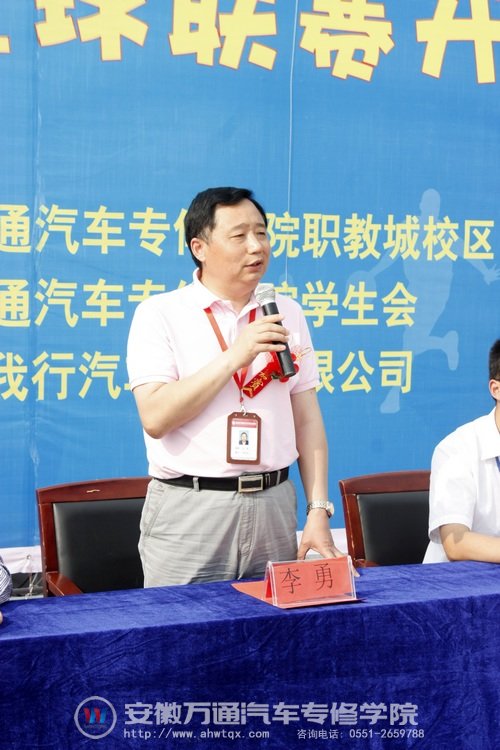 开幕式上,安徽万通汽车专修学院李勇副院长首先为开幕式致辞,并对今年篮球联赛的举办寄予厚望。他说,5月是个浪漫的季节,在这样季节里,我们迎来了安徽万通汽车专修学院搬入职教城新校区的第一届篮球联赛。在此,要向辛勤工作的赛事组织者表示衷心的感谢,也向所有参加此次联赛的裁判员、运动员致以诚挚的祝贺。他强调,篮球是项富有激情的对抗性体育运动,作为学院“三教两训”工作的重要内容,也作为校园文化建设的核心工作,希望同学们能够通过比赛,保持高昂的激情,秉承“友谊第一,比赛第二”的原则,赛出成绩、赛出水平,并预祝此次联赛取得圆满成功。