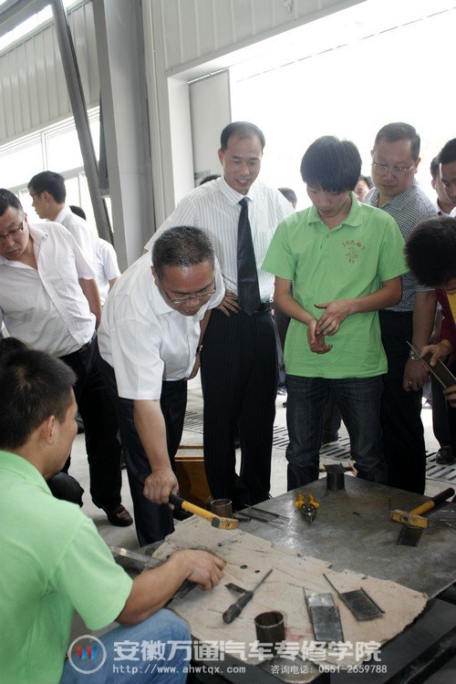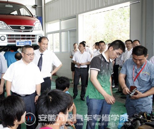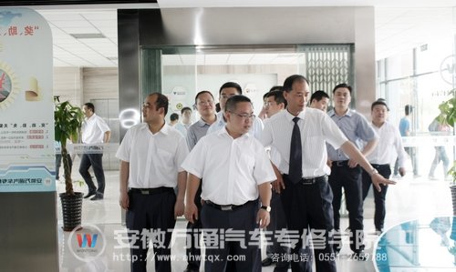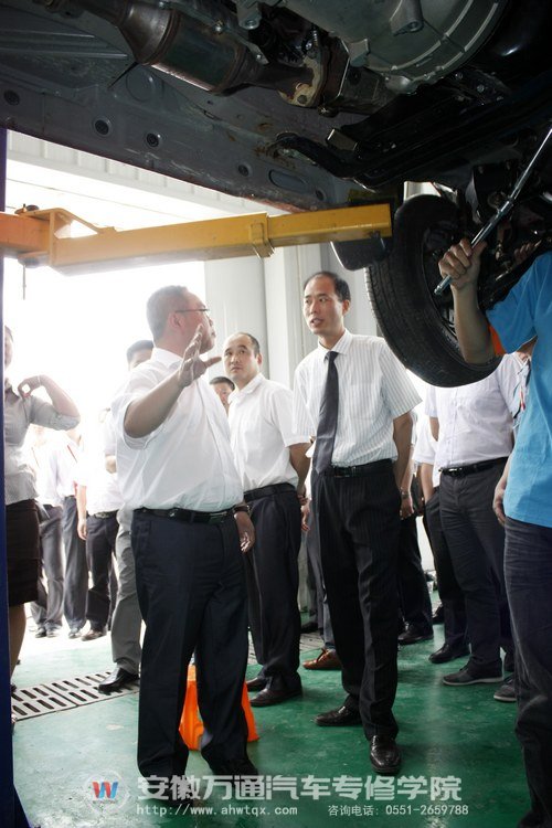 上午11点,考察团一行乘坐的专车到达我院职教城新校区,新华教育集团常务副总经理张明一行在我院领导的陪同下先后参观了各大实训室、咨询中心以及新校区各大职能区块。每走到一处,张明副总经理都会仔细询问学院相关情况,当走入每个实训室时,他会仔细询问学生在安徽万通汽车专修学院的学习、生活情况,当听到都很满意的时候他显得非常欣慰,并勉励学生们在今后的学习过程中继续努力、不断钻研,争取创造更大的成功。考察团一行步入我院咨询中心时,被里面雅致的陈设、高科技的设备等所吸引,纷纷拍照留念并向讲解员仔细询问。张荣全院长在陪同考察团一行过程中,详细介绍了我院近年来在全面推进汽修职业教育发展过程中所采取的多项积极举措,在坚持新华教育集团“教育的根本是爱与责任”的教育理念,不断夯实汽修职业教育基础,坚持汽车品牌国际化为导向,汽修技术专业化为目标,以特色汽修教育求发展,全面实施职业教育精品化战略。多年发展过程中,学院形成了独具特色的汽修职业教育发展模式,在全面提升汽修职业教育品次过程中取得了辉煌成就,得到了学生、家长以及社会的一致肯定。