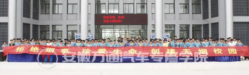 5月31日是世界卫生组织发起的第25个世界无烟日,为宣传无烟理念,推动校园无烟环境建设,由安徽万通汽车专修学院学生处举办的“世界无烟日”系列活动在职教城新校区综合楼前拉开大幕,千余名学生积极参与到了活动之中。