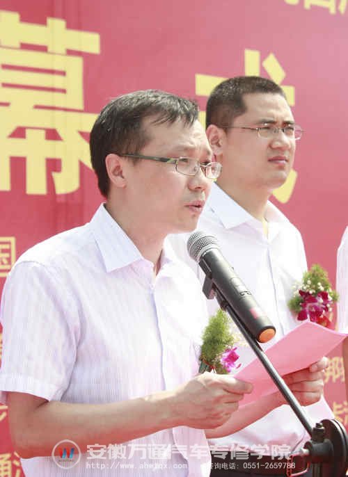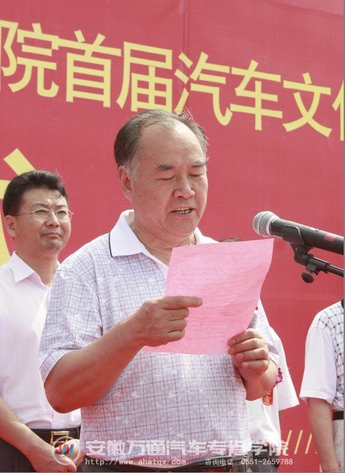 紧接着,寥光宙副院长上台宣读了首届汽车文化节的具体活动组织及安排。随后,安徽省汽车行业协会会长梁华平代表行业协会讲话。他首先积极肯定了安徽万通汽车专修学院多年发展过程中所取得的一系列成绩及在不断推进汽修职业教育体系改革过程中所做出的重大贡献,并希望今后能够进一步与学院合作,以共同推进汽修教育事业和安徽省汽车行业的发展进步为目标,不断夯实基础,创造更辉煌的成绩。他还表示,安徽万通汽车专修学院作为国内汽修职业教育行业的领航者,是国家紧缺型汽车技术人才培养基地,办校多年来为汽车行业培养了一批又一批汽车行业人才,为推动行业发展做出了卓越贡献。他后还强调,近年来,随着中国汽车行业的高速发展,整体性汽车保有量连年攀升,汽车已成大众出行的主要代步工具。同时,汽车行业的高速发展必然催生出深厚的汽车文化底蕴。安徽万通作为全国知名的汽修职业教育院校,势必也将成为汽车文化的孕育之地,并为汽车相关产业的文化积淀提供优良载体。因此,希望学院能够利用好这样优质的发展平台,不断推进汽车文化建设,以“行业文化进校园,企业文化进课堂”为导向,为把学院建设成全国领先且具备深厚文化内涵的职业院校而不断努力。