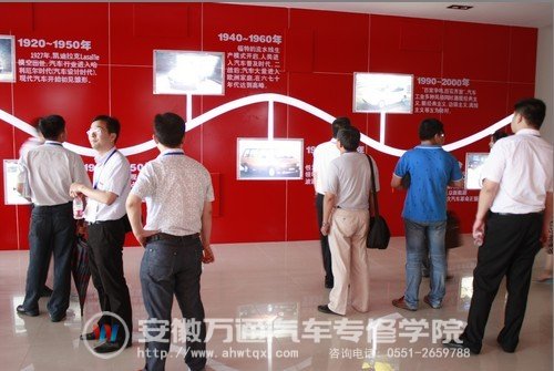 在学院领导及讲解员的引导下,来访嘉宾队伍陆续参观了学院各大实训室、学生餐厅、学生宿舍、驾训场、咨询中心等。他们每走到一处,都会停下脚步,向讲解员和学院领导询问并仔细拍照留念。当走到刻有“汽车医生的摇篮”的老师高徒形象墙及“世界汽车发展史”文化墙时,他们被这些典雅而不失庄重的文化氛围所吸引,纷纷合影留念;当步入学院咨询中心时,他们被里面雅致的陈设和干净整洁的环境所折服,纷纷对学院领导竖起“大拇指”;当他们走到学院“”形象墙前时,纷纷称赞学院学生就业形式的多元化和开展的多样化。