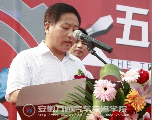 上午8时58分,安徽万通汽车专修学院第十届“五菱汽车杯”汽车维修技能大赛总决赛开幕式在葛大店南校区操场正式开始。孙平副院长首先代表学院致词,他首先对大赛的召开表示祝贺,并对关心和支持大赛举行的各界领导以及所有工作人员表示衷心的感谢。他说,随着汽车后服务市场的发展和变化,社会越来越迫切需要高级技能人才,通过举办技能大赛,为广大学子提供一个展现自我、检验学习的机会。同时,形成一个“你追我赶”良好的学习氛围。他强调,本次技能大赛的成功举办是对万通成功教学模式的一个佐证,同学们可以更好的“以赛促学”,并给在校生创造一个切磋技艺、展现水平的舞台,在学生中再一次掀起勤练技能、学好技能的良好氛围。他后还勉励所有参赛选手要在比赛中充分发挥聪明才智,沉着、认真对待每项赛程,坚持“友谊、团结、交流、进步”的宗旨,以良好的心理素质和精神风貌切磋技艺、赛出风格、赛出水平,取得好的成绩,充分展示技能型人才的精湛技艺和风采。