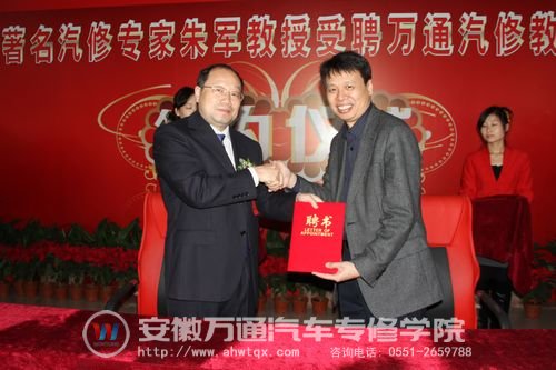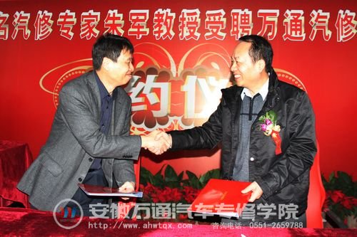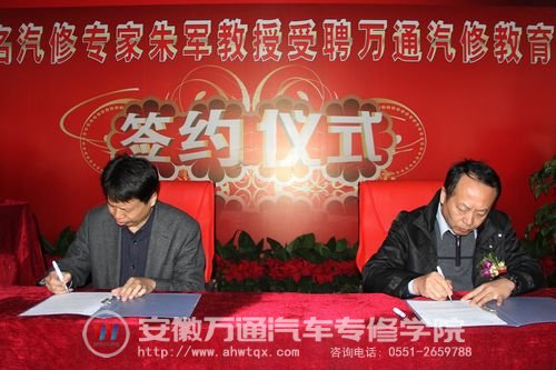 11月16日,新华教育集团特聘著名汽修专家朱军教授为万通汽修教育客座教授签约仪式在北京万通汽修学校举行。中国汽车工程学会汽车应用与服务分会赵丽丽秘书长、新华教育集团汪俊副总经理、新华教育集团汽修研究院院长、汽修事业部何扬副部长出席签约仪式,腾讯网、土豆网等多家知名媒体给予高度关注和报道。