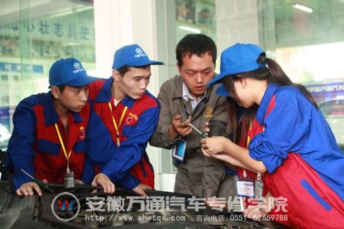杨倩,安徽万通12级汽车4S应用工程师专业学生,老家安徽六安,刚刚成年便离开家庭父母的庇护独自一人来到安徽万通汽车专修学院学习。这个外表柔弱的女生说话轻声细语,很是腼腆,然而你若是认为她是个没有主见的小女生就错了——和她聊了一会儿记者就发现这个外表柔弱的女生却有着一颗十分强大的内心。当谈及选择汽修的原因时,杨倩坦言当时也觉得汽修不适合女生,想去学电脑。可是自己初中,电脑知识颇为复杂,还有好多英文怕看不懂,重要的是自己想学的那个电脑专业学制太长,因而放弃了。后来自己通过多种渠道了解到安徽万通,才知道原来汽修不仅仅是汽车修理,还包括汽车4s应用和汽车美容装潢,这些都很适合女生来做。加上自己对汽车也比较感兴趣,以后想在4s店工作,而且学制也不长,15个月。令人满意的一点是安徽万通“技能+就业”的教学模式意味着自己后可以拿到相应的证书,给自己的就业增添砝码。当记者问到班里有几个女生时,杨倩露出了她那标志性的羞涩的笑容回答说:两个。杨倩介绍说因为女生较少,所以处处受到优待,比如打饭优先权,比如男生会主动帮助拿比较重的工具,同时她也坦言希望人们改变观点特别是对汽修是男生行业的偏见,希望越来越多的女生也能投身汽修,在这个行业里做出自己的一番成绩。
