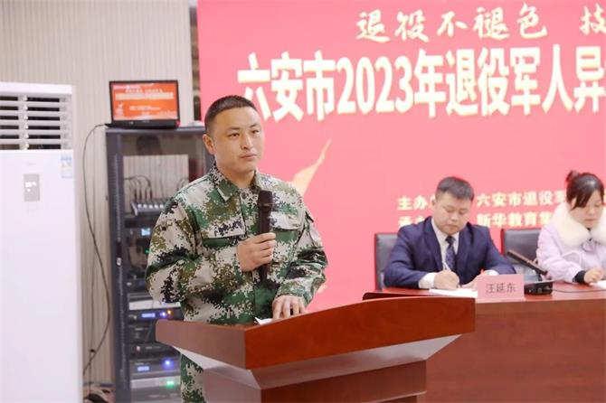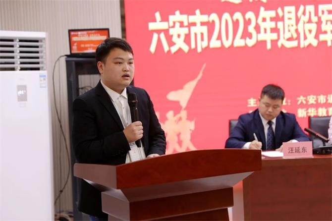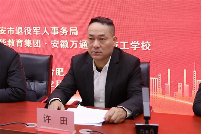 安徽万通高级技工学校校长助理许田 最后,六安市退役军人事务局副局长崔勇在讲话中向学校及退役军人学员提了三点建议:一是希望培训学校精心教学;二是希望退役军人学有所获;三是希望退役军人遵章守纪。他还提到,本次培训班的举办,既是提升退役军人就业竞争力的迫切需要,也是打破了地区界限,统筹共享优质培训资源,更是落实全省退役军人能力提升专项行动的具体举措。