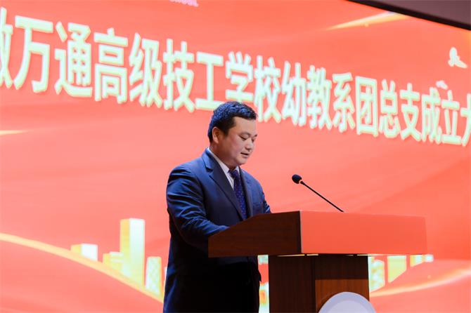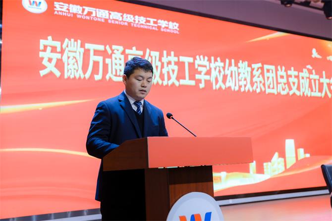 大会活动现场 安徽万通高级技工学校党支部书记廖光宙、校长助理张凯星、校区主任张庆、教务处主任王明洋、学生处主任韩涛、校团委书记杨坤、党支部组织委员李学君、幼教系系主任梅双、幼教系教学主管王仕如、幼教系学生主管凌茹等校领导及全体幼教系教师出席了此次会议。校区主任张庆在致辞中对幼教系团总支的成立表示热烈的祝贺,并提出几点希望:一是积极组织参与文明校园建设,多组织开展校园文化活动,积极参与各类大赛;二是加强团员队伍建设,提升系部的特色;三是希望全体团员青年珍惜机遇、发挥优势。