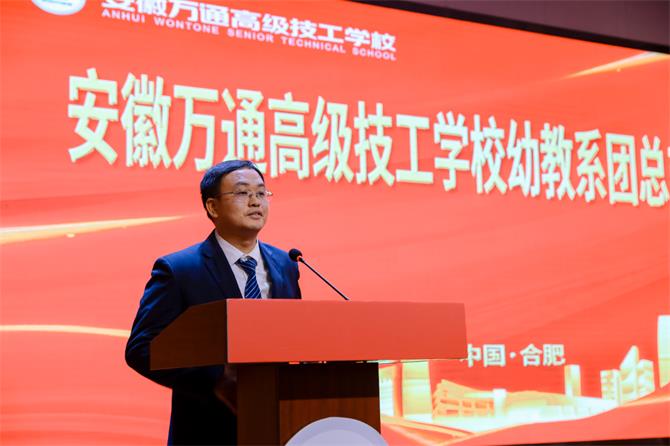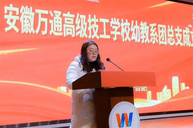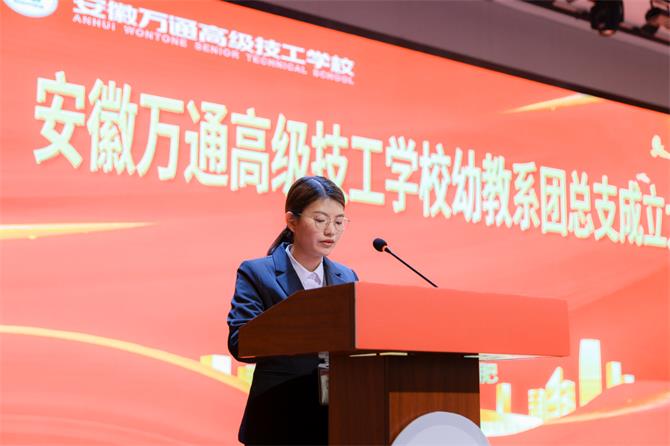校党支部组织委员李学君 最后,幼教系系主任梅双宣布安徽万通高级技工学校幼教系团总支正式成立!